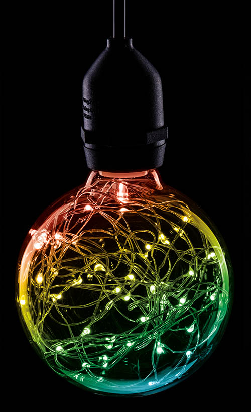 Non-Dimmable LED Lamp. Twinkle Effect. Tough Polycarbonate Globe. Choice of Colours. Bayonet or Edison FittingWattage: 1.7W Dimmable: No. This star effect LED globe lamp contains a string of flashing LEDs inside a polycarbonate globe creating an awesome funky starry effect- ideal for creating accent lighting in hotels- bars- restaurants- shops and homes. Perfect for use as festoon to light up pathways- trees- marquees and pergolas- and is a stunning addition to weddings- festivals- garden parties and other outdoor events.. led lamp-led lightbulb
