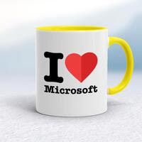 I Love Microsoft Mug\nA geeky mug with "I Love Microsoft" printed on both sides. Simple and straight to the point this geeky mug is great as a gift for any occasion.\nOur I Love Microsoft mug is hand-printed on both sides (front/back) of a high-quality mug and is available in a variety of styles and colours. \nChoose from A classic ceramic mug in white glossVibrantly coloured inner and matching handle mugsGold or silver sparkling pearl finish mugsGold, silver, pink or blue glitter mugs\n\n\n\nPlease Note\nAll of our items are hand-printed to order, as a result, colours may vary between prints - images are for illustration purposes only.\n