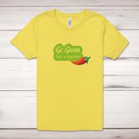 Go Green Fuck A Vegetarian Adult T-ShirtA rude unisex adult t-shirt with 'Go Green Fuck A Vegetarian' printed across the front of a 100% cotton* t-shirt. This rude t-shirt is great as a gift for any occasion.All of our unisex adult t-shirts are designed and hand-printed in the UK and are manufactured from 100% ringspun cotton for a premium quality feel and feature double-stitched waist hem and sleeves, seamless double-needle collar, taped neck and shoulders, and a tubular body that has been quarter turned to avoid a centre crease; available in sizes from Extra Small to 4XL*. *Black & White tees available in sizes XS - 4XL, all other colours available XS - 2XL Size GuideUnisex adult t-shirts are measured across the chest, in inchesXS 30/32'S 34/36'M 38/40'L 42/44'XL 46/48'2XL 50/52'3XL 54/56'4XL 58/60'See more on our clothing size guide (opens in new tab)Please NoteAll of our items are hand-printed to order, as a result, colours may vary between prints - images are for illustration purposes only.Show more products with the Go Green Fuck A... design