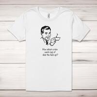 How About A Nice Warm Cup Of Shut The Fuck Up Adult T-ShirtA rude adult t-shirt with a choice of two retro graphics and the slogan 'How About A Nice Warm Cup Of Shut The Fuck Up' printed across the front of a 100% cotton* t-shirt. This rude t-shirt is great as a gift for any occasion.All of our unisex adult t-shirts are designed and hand-printed in the UK and are manufactured from 100% ringspun cotton for a premium quality feel and feature double-stitched waist hem and sleeves, seamless double-needle collar, taped neck and shoulders, and a tubular body that has been quarter turned to avoid a centre crease; available in sizes from Extra Small to 4XL*. *Black & White tees available in sizes XS - 4XL, all other colours available XS - 2XL Size GuideUnisex adult t-shirts are measured across the chest, in inchesXS 30/32'S 34/36'M 38/40'L 42/44'XL 46/48'2XL 50/52'3XL 54/56'4XL 58/60'See more on our clothing size guide (opens in new tab)Please NoteAll of our items are hand-printed to order, as a result, colours may vary between prints - images are for illustration purposes only.Show more products with the How About A Nice Warm Cup Of Shut The Fuck Up design