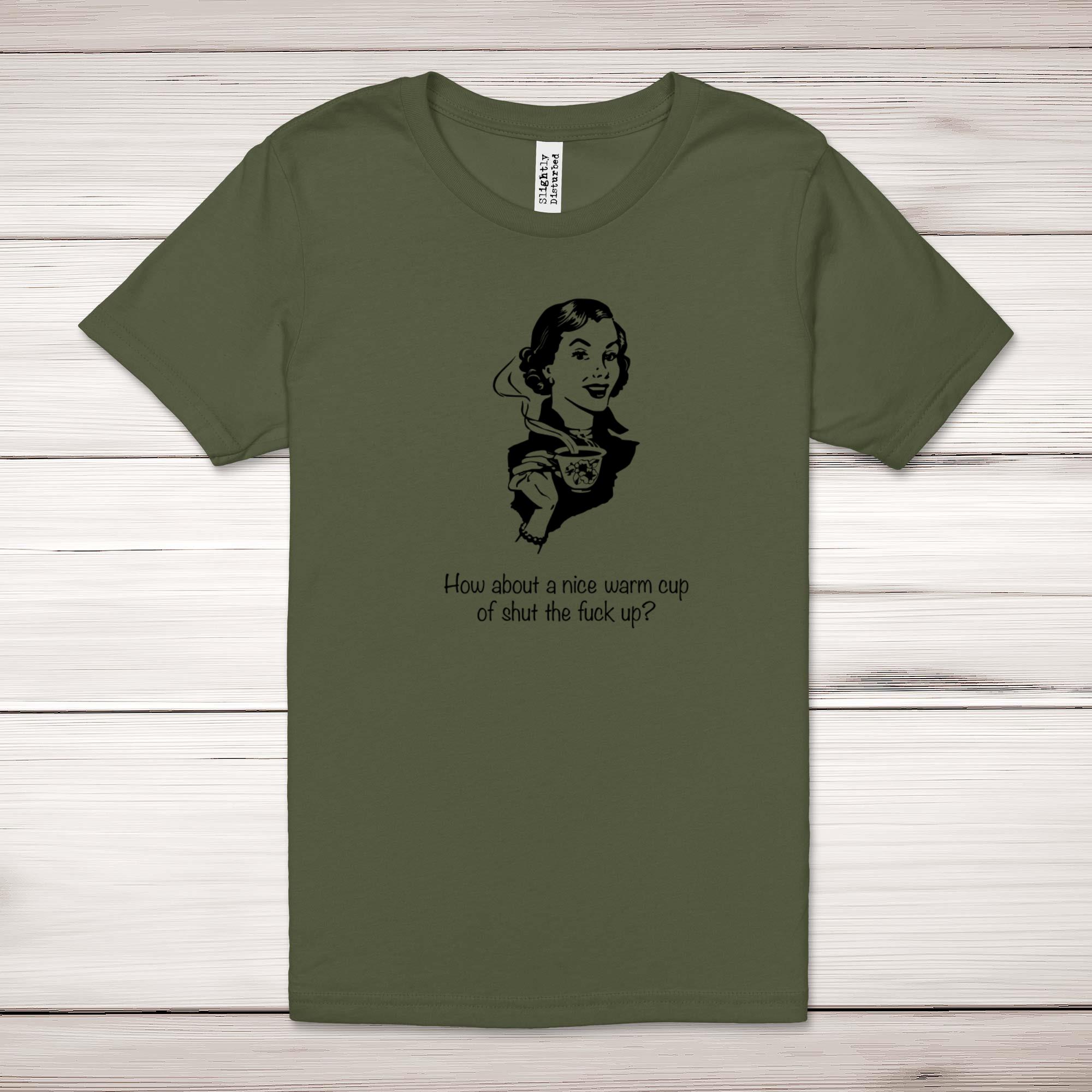 Priceop.com : how about a nice warm cup of shut the fuck up adult t-shirt Priceop.com : how about a nice warm cup of shut the fuck up adult t-shirt