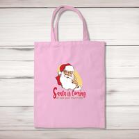 Santa Is Coming Tote BagA rude shopping bag with 'Santa Is Coming' printed on the front of a 100% cotton tote bag. This rude bag is a perfect replacement for plastic bags in retail, supermarkets and any other kinds of stores. Reusable, sustainable and multifunctional. 100% 150gsm Cotton10 litre capacity38 x 42 cmLong handled shopper, for easy use over the shoulderAvailable in a range of coloursDesigned and hand-printed in the UKPlease NoteAll of our items are hand-printed to order, as a result, colours may vary between prints - images are for illustration purposes only.