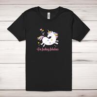 I'm Fucking Fabulous Adult T-ShirtA rude adult t-shirt with a pretty unicorn design and the slogan 'I'm Fucking Fabulous' printed across the front of a 100% cotton* t-shirt. This rude t-shirt is great as a gift for any occasion.All of our unisex adult t-shirts are designed and hand-printed in the UK and are manufactured from 100% ringspun cotton for a premium quality feel and feature double-stitched waist hem and sleeves, seamless double-needle collar, taped neck and shoulders, and a tubular body that has been quarter turned to avoid a centre crease; available in sizes from Extra Small to 4XL*. *Black & White tees available in sizes XS - 4XL, all other colours available XS - 2XL Size GuideUnisex adult t-shirts are measured across the chest, in inchesXS 30/32'S 34/36'M 38/40'L 42/44'XL 46/48'2XL 50/52'3XL 54/56'4XL 58/60'See more on our clothing size guide (opens in new tab)Please NoteAll of our items are hand-printed to order, as a result, colours may vary between prints - images are for illustration purposes only.Show more products with the I'm Fucking Fabulous design