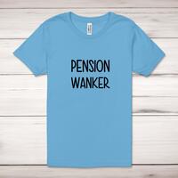 Pension Wanker Adult T-ShirtA rude unisex adult t-shirt with 'Pension Wanker' printed across the front of a 100% cotton* t-shirt. This rude t-shirt is great as a gift for any occasion.All of our unisex adult t-shirts are designed and hand-printed in the UK and are manufactured from 100% ringspun cotton for a premium quality feel and feature double-stitched waist hem and sleeves, seamless double-needle collar, taped neck and shoulders, and a tubular body that has been quarter turned to avoid a centre crease; available in sizes from Extra Small to 4XL*. *Black & White tees available in sizes XS - 4XL, all other colours available XS - 2XL Size GuideUnisex adult t-shirts are measured across the chest, in inchesXS 30/32'S 34/36'M 38/40'L 42/44'XL 46/48'2XL 50/52'3XL 54/56'4XL 58/60'See more on our clothing size guide (opens in new tab)Please NoteAll of our items are hand-printed to order, as a result, colours may vary between prints - images are for illustration purposes only.Show more products with the Pension Wanker design