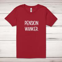 Pension Wanker Adult T-ShirtA rude unisex adult t-shirt with 'Pension Wanker' printed across the front of a 100% cotton* t-shirt. This rude t-shirt is great as a gift for any occasion.All of our unisex adult t-shirts are designed and hand-printed in the UK and are manufactured from 100% ringspun cotton for a premium quality feel and feature double-stitched waist hem and sleeves, seamless double-needle collar, taped neck and shoulders, and a tubular body that has been quarter turned to avoid a centre crease; available in sizes from Extra Small to 4XL*. *Black & White tees available in sizes XS - 4XL, all other colours available XS - 2XL Size GuideUnisex adult t-shirts are measured across the chest, in inchesXS 30/32'S 34/36'M 38/40'L 42/44'XL 46/48'2XL 50/52'3XL 54/56'4XL 58/60'See more on our clothing size guide (opens in new tab)Please NoteAll of our items are hand-printed to order, as a result, colours may vary between prints - images are for illustration purposes only.Show more products with the Pension Wanker design