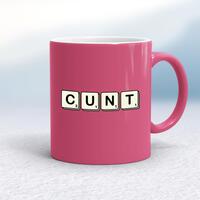 Scrabble Tiles Cunt MugA rude mug with the word 'Cunt' in the style of Scrabble tiles on both sides. Simple and straight to the point this rude mug is great as a gift for any occasion.Our Scrabble Tiles Cunt mug is hand-printed on both sides (front/back) of a high-quality mug and available in a variety of styles and colours. Choose from A classic ceramic mug in white glossVibrantly coloured inner and matching handle mugsGold or silver sparkling pearl finish mugsGold, silver, pink or blue glitter mugsPremium satin mugs in a choice of colours.Please NoteAll of our items are hand-printed to order, as a result, colours may vary between prints - images are for illustration purposes only.