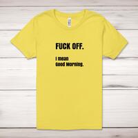 Priceop.com : fuck off i mean good morning adult t-shirt - yellow, medium Priceop.com : fuck off i mean good morning adult t-shirt - yellow, medium