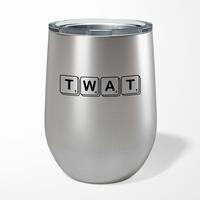 Scrabble Tiles Twat Wine TumblerOur Scrabble Tiles Twat 12oz tumbler is hand-printed with 'Scrabble Tiles Twat' on both sides (front/back) of an insulated stainless steel wine tumbler and available in a variety of colours.Ideal for weekends away or relaxing in the garden, our 12oz Wine Tumbler promises to keep cold drinks cold and hot drinks hot for longer than standard drinkware. Made from premium grade, food-safe stainless steel with double-wall vacuum insulation. A fantastic rude tumbler, ideal for keeping your favourite tipple at the perfect temperature whatever the weather. High-grade stainless steel double-wall construction. Insulated for hot or cold liquids. Flat bottom design means less risk of accidental spillages. See through lid allows you to carry your beverage around without spilling. Drinking spout incorporated in to the lid. Please Note All of our items are hand-printed to order, as a result, colours may vary between prints - images are for illustration purposes only.