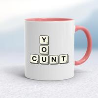 Scrabble Tiles You Cunt MugA rude mug with the words 'You Cunt' spelled out in the style of Scrabble tiles on both sides. Simple and straight to the point this rude mug is great as a gift for any occasion.Our Scrabble Tiles You Cunt mug is hand-printed on both sides (front/back) of a high-quality mug and available in a variety of styles and colours. Choose from A classic ceramic mug in white glossVibrantly coloured inner and matching handle mugsGold or silver sparkling pearl finish mugsGold, silver, pink or blue glitter mugsPremium satin mugs in a choice of colours.Please NoteAll of our items are hand-printed to order, as a result, colours may vary between prints - images are for illustration purposes only.