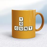 Scrabble Tiles You Cunt MugA rude mug with the words 'You Cunt' spelled out in the style of Scrabble tiles on both sides. Simple and straight to the point this rude mug is great as a gift for any occasion.Our Scrabble Tiles You Cunt mug is hand-printed on both sides (front/back) of a high-quality mug and available in a variety of styles and colours. Choose from A classic ceramic mug in white glossVibrantly coloured inner and matching handle mugsGold or silver sparkling pearl finish mugsGold, silver, pink or blue glitter mugsPremium satin mugs in a choice of colours.Please NoteAll of our items are hand-printed to order, as a result, colours may vary between prints - images are for illustration purposes only.