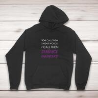 Sentence Enhancers HoodieA novelty hoodie with 'You Call Then Swear Words, I Call Them Sentence Enhancers!' printed on the front of a unisex pullover hooded sweatshirt. Simple and straight to the point this novelty hoodie is great as a gift for any occasion.Comfortable and cosy, this hoodie manages to be both warm and cool. The super soft feel and plush fabric is definitely something you’ll want to warm up to. All of our garments are designed and hand-printed in the UK and are manufactured from preshrunk fleece knit and features a double-lined hood, and colour-matched drawcord, pouch pocket and a tubular body that has been quarter turned to avoid a centre crease; available in sizes small to 5XL. Classic fit Preshrunk fleece knit Air jet yarn = softer feel and reduced pilling Double-lined hood with colour-matched drawcord Pouch pocket Twin-needle stitching at shoulder, armhole, neck, waistband and cuffs 1 x 1 rib with elastane Quarter-turned to eliminate centre crease Material Weight 271gsm 50% Cotton / 50% PolyesterSize Guidemeasured across the chest S 34/36' M 38/40' L 42/44' XL 46/48' 2XL 50/52' 3XL 54/56' 4XL 58/60' 5XL 62/64'See more on our clothing size guide (opens in new tab) Please Note All of our items are hand-printed to order, as a result, colours may vary between prints - images are for illustration purposes only.