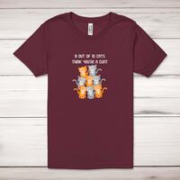 8 Out Of 10 Cats Adult T-ShirtA rude unisex adult t-shirt with '8 out of 10 Cats think you're a cunt' printed across the front of a 100% cotton* t-shirt. This rude t-shirt is great as a gift for any occasion.All of our unisex adult t-shirts are designed and hand-printed in the UK and are manufactured from 100% ringspun cotton for a premium quality feel and feature double-stitched waist hem and sleeves, seamless double-needle collar, taped neck and shoulders, and a tubular body that has been quarter turned to avoid a centre crease; available in sizes from Extra Small to 4XL*. *Black & White tees available in sizes XS - 4XL, all other colours available XS - 2XL Size GuideUnisex adult t-shirts are measured across the chest, in inchesXS 30/32'S 34/36'M 38/40'L 42/44'XL 46/48'2XL 50/52'3XL 54/56'4XL 58/60'See more on our clothing size guide (opens in new tab)Please NoteAll of our items are hand-printed to order, as a result, colours may vary between prints - images are for illustration purposes only.Show more products with the 8 Out Of 10 Cats design