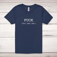 Fuck You, Fuck Me, Fuck Off Adult T-ShirtA rude unisex adult t-shirt with 'Fuck You, Fuck Me, Fuck Off' tick boxes printed across the front of a 100% cotton* t-shirt. This rude t-shirt is great as a gift for any occasion.All of our unisex adult t-shirts are designed and hand-printed in the UK and are manufactured from 100% ringspun cotton for a premium quality feel and feature double-stitched waist hem and sleeves, seamless double-needle collar, taped neck and shoulders, and a tubular body that has been quarter turned to avoid a centre crease; available in sizes from Extra Small to 4XL*. *Black & White tees available in sizes XS - 4XL, all other colours available XS - 2XL Size GuideUnisex adult t-shirts are measured across the chest, in inchesXS 30/32'S 34/36'M 38/40'L 42/44'XL 46/48'2XL 50/52'3XL 54/56'4XL 58/60'See more on our clothing size guide (opens in new tab)Please NoteAll of our items are hand-printed to order, as a result, colours may vary between prints - images are for illustration purposes only.Show more products with the Fuck You, Fuck Me, Fuck Off design
