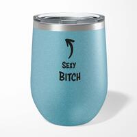 Sexy Bitch Wine TumblerOur Sexy Bitch 12oz tumbler is hand-printed with 'Sexy Bitch' on both sides (front/back) of an insulated stainless steel wine tumbler and available in a variety of colours.Ideal for weekends away or relaxing in the garden, our 12oz Wine Tumbler promises to keep cold drinks cold and hot drinks hot for longer than standard drinkware. Made from premium grade, food-safe stainless steel with double-wall vacuum insulation. A fantastic rude tumbler, ideal for keeping your favourite tipple at the perfect temperature whatever the weather. High-grade stainless steel double-wall construction. Insulated for hot or cold liquids. Flat bottom design means less risk of accidental spillages. See through lid allows you to carry your beverage around without spilling. Drinking spout incorporated in to the lid. Please Note All of our items are hand-printed to order, as a result, colours may vary between prints - images are for illustration purposes only.