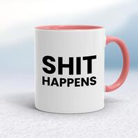 Shit Happens MugA rude mug with 'Shit Happens' printed on both sides. Simple and straight to the point this rude mug is great as a gift for any occasion.Our Shit Happens mug is hand-printed on both sides (front/back) of a high-quality mug and is available in a variety of styles and colours. Choose from A classic ceramic mug in white glossVibrantly coloured inner and matching handle mugsGold or silver sparkling pearl finish mugsGold, silver, pink or blue glitter mugsPremium satin mugs in a choice of colours.Please NoteAll of our items are hand-printed to order, as a result, colours may vary between prints - images are for illustration purposes only.
