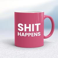 Shit Happens MugA rude mug with 'Shit Happens' printed on both sides. Simple and straight to the point this rude mug is great as a gift for any occasion.Our Shit Happens mug is hand-printed on both sides (front/back) of a high-quality mug and is available in a variety of styles and colours. Choose from A classic ceramic mug in white glossVibrantly coloured inner and matching handle mugsGold or silver sparkling pearl finish mugsGold, silver, pink or blue glitter mugsPremium satin mugs in a choice of colours.Please NoteAll of our items are hand-printed to order, as a result, colours may vary between prints - images are for illustration purposes only.