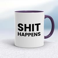 Shit Happens MugA rude mug with 'Shit Happens' printed on both sides. Simple and straight to the point this rude mug is great as a gift for any occasion.Our Shit Happens mug is hand-printed on both sides (front/back) of a high-quality mug and is available in a variety of styles and colours. Choose from A classic ceramic mug in white glossVibrantly coloured inner and matching handle mugsGold or silver sparkling pearl finish mugsGold, silver, pink or blue glitter mugsPremium satin mugs in a choice of colours.Please NoteAll of our items are hand-printed to order, as a result, colours may vary between prints - images are for illustration purposes only.