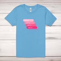 Beat Me Bite Me Whip Me Adult T-ShirtA rude unisex adult t-shirt with 'Beat Me Bite Me Whip Me Fuck Me, Just Don't Cum In My Mouth' printed across the front of a 100% cotton* t-shirt. This rude t-shirt is great as a gift for any occasion.All of our unisex adult t-shirts are designed and hand-printed in the UK and are manufactured from 100% ringspun cotton for a premium quality feel and feature double-stitched waist hem and sleeves, seamless double-needle collar, taped neck and shoulders, and a tubular body that has been quarter turned to avoid a centre crease; available in sizes from Extra Small to 4XL*. *Black & White tees available in sizes XS - 4XL, all other colours available XS - 2XL Size GuideUnisex adult t-shirts are measured across the chest, in inchesXS 30/32'S 34/36'M 38/40'L 42/44'XL 46/48'2XL 50/52'3XL 54/56'4XL 58/60'See more on our clothing size guide (opens in new tab)Please NoteAll of our items are hand-printed to order, as a result, colours may vary between prints - images are for illustration purposes only.Show more products with the Beat Me Bite Me Whip Me design