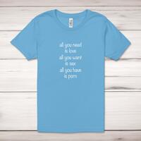 Priceop.com : all you need is love, all you have is porn adult t-shirt - ocean blue, xs Priceop.com : all you need is love, all you have is porn adult t-shirt - ocean blue, xs