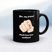 Should Have Been Swallowed MugA rude mug with 'You, My Friend Should Have Been Swallowed' printed on both sides. Simple and straight to the point this rude mug is great as a gift for any occasion.Our Should Have Been Swallowed mug is hand-printed on both sides (front/back) of a high-quality mug and is available in a variety of styles and colours. Choose from A classic ceramic mug in white glossVibrantly coloured inner and matching handle mugsGold or silver sparkling pearl finish mugsGold, silver, pink or blue glitter mugsPremium satin mugs in a choice of colours.Please NoteAll of our items are hand-printed to order, as a result, colours may vary between prints - images are for illustration purposes only.