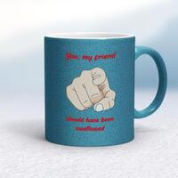 Should Have Been Swallowed MugA rude mug with 'You, My Friend Should Have Been Swallowed' printed on both sides. Simple and straight to the point this rude mug is great as a gift for any occasion.Our Should Have Been Swallowed mug is hand-printed on both sides (front/back) of a high-quality mug and is available in a variety of styles and colours. Choose from A classic ceramic mug in white glossVibrantly coloured inner and matching handle mugsGold or silver sparkling pearl finish mugsGold, silver, pink or blue glitter mugsPremium satin mugs in a choice of colours.Please NoteAll of our items are hand-printed to order, as a result, colours may vary between prints - images are for illustration purposes only.