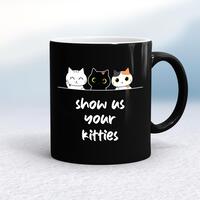 Show Us Your Kitties MugA novelty mug with 'Show Us Your Kitties' printed on both sides. Simple and straight to the point this novelty mug is great as a gift for any occasion.Our Show Us Your Kitties mug is hand-printed on both sides (front/back) of a high-quality mug and available in a variety of styles and colours. Choose from A classic ceramic mug in white glossVibrantly coloured inner and matching handle mugsGold or silver sparkling pearl finish mugsGold, silver, pink or blue glitter mugsPremium satin mugs in a choice of colours.Please NoteAll of our items are hand-printed to order, as a result, colours may vary between prints - images are for illustration purposes only.
