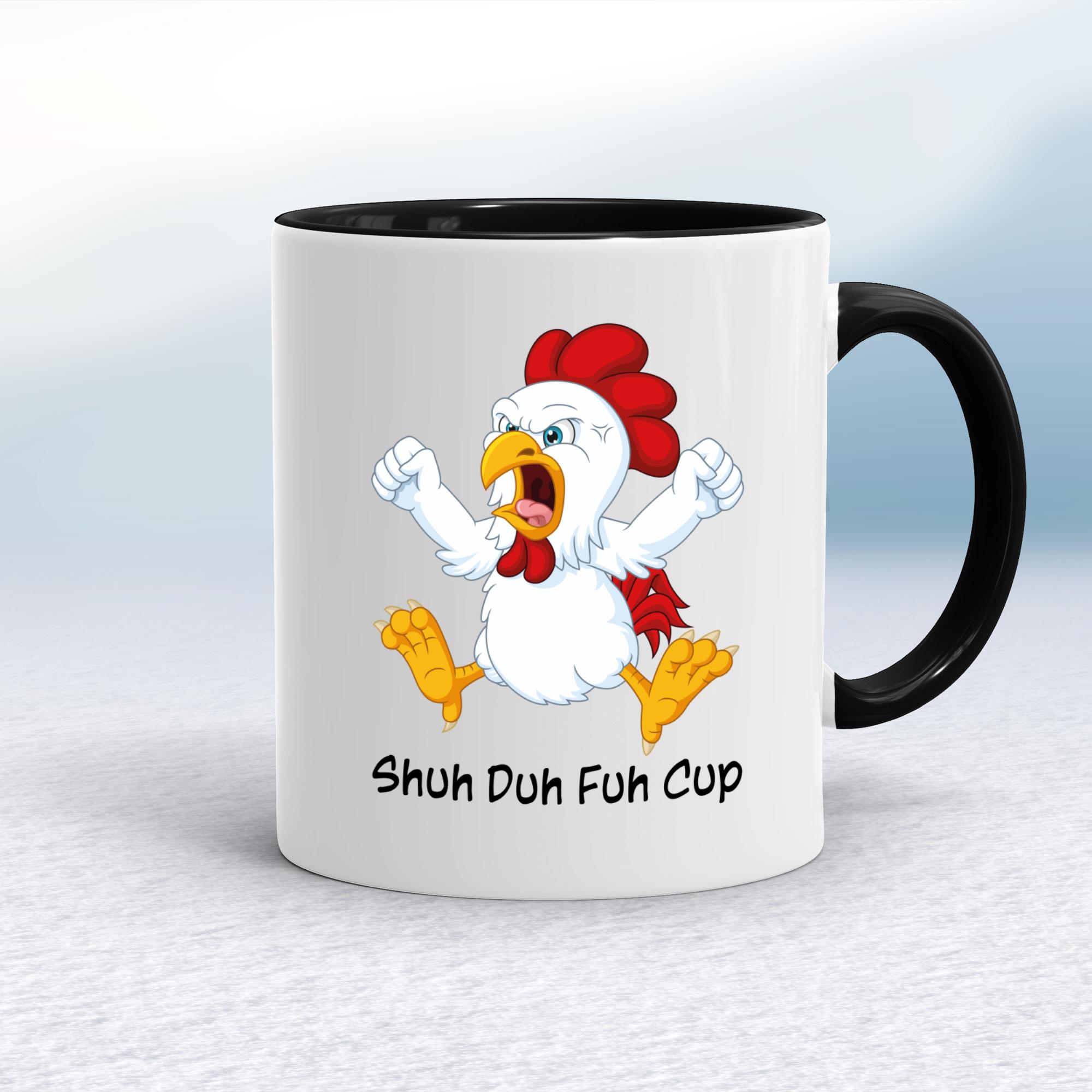 Shuh Duh Fuh Cup Baby T-ShirtOur rude baby t-shirt is printed with 'Shuh Duh Fuh Cup' and is super snug and ultra comfy.Super soft and stretchy 100% cotton, short sleeve t-shirt with 2 self-coloured poppers at side neck for ease of dressing. Cover stitch at hem and sleeve ends. A perfect gift;ideal for any occasion.Not only will your baby t-shirt be super snug and ultra comfy but you will feel comforted knowing that the processes of manufacturing cotton-based garments have a positive impact on the communities and on the environment in which the Babybugz brand work.Machine washableFabric: 100% Cotton, 200gsm, Interlock weaveSoft and stretchy fabric2 self-coloured poppers at side neckCover stitch at hem and sleeve ends1x1 rib neckSize GuideMeasurements in cm relate to baby's height0/3 mths: 53-60cm 3/6 mths: 60-66cm 6/12 mths: 66-76cm 12/18 mths: 76-86cm 18/24 mths: 86-93cmSee more on our clothing size guide (opens in new tab)\nPlease NoteAll of our items are hand-printed to order, as a result, colours may vary between prints - images are for illustration purposes only.