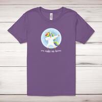 You Make Me Horny Unicorny Adult T-ShirtA rude unisex adult t-shirt with 'You Make Me Horny', choose from either a fabulous pink unicorn or a cheeky dabbing blue unicorn design printed across the front of a 100% cotton* t-shirt. This rude t-shirt is great as a gift for any occasion.All of our unisex adult t-shirts are designed and hand-printed in the UK and are manufactured from 100% ringspun cotton for a premium quality feel and feature double-stitched waist hem and sleeves, seamless double-needle collar, taped neck and shoulders, and a tubular body that has been quarter turned to avoid a centre crease; available in sizes from Extra Small to 4XL*. *Black & White tees available in sizes XS - 4XL, all other colours available XS - 2XL Size GuideUnisex adult t-shirts are measured across the chest, in inchesXS 30/32'S 34/36'M 38/40'L 42/44'XL 46/48'2XL 50/52'3XL 54/56'4XL 58/60'See more on our clothing size guide (opens in new tab)Please NoteAll of our items are hand-printed to order, as a result, colours may vary between prints - images are for illustration purposes only.Show more products with the You Make Me Horny Unicorny design