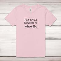 It's Not A Hangover It's Wine Flu Adult T-ShirtA novelty unisex adult t-shirt with 'It's Not A Hangover It's Wine Flu' printed across the front of a 100% cotton* t-shirt. This novelty t-shirt is great as a gift for any occasion.All of our unisex adult t-shirts are designed and hand-printed in the UK and are manufactured from 100% ringspun cotton for a premium quality feel and feature double-stitched waist hem and sleeves, seamless double-needle collar, taped neck and shoulders, and a tubular body that has been quarter turned to avoid a centre crease; available in sizes from Extra Small to 4XL*. *Black & White tees available in sizes XS - 4XL, all other colours available XS - 2XL Size GuideUnisex adult t-shirts are measured across the chest, in inchesXS 30/32'S 34/36'M 38/40'L 42/44'XL 46/48'2XL 50/52'3XL 54/56'4XL 58/60'See more on our clothing size guide (opens in new tab)Please NoteAll of our items are hand-printed to order, as a result, colours may vary between prints - images are for illustration purposes only.Show more products with the It's Not A Hangover It's Wine Flu design