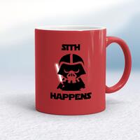 Sith Happens MugA geeky mug with 'Sith Happens' printed on both sides. Simple and straight to the point this geeky mug is great as a gift for any occasion.Our Sith Happens mug is hand-printed on both sides (front/back) of a high-quality mug and is available in a variety of styles and colours. Choose from A classic ceramic mug in white glossVibrantly coloured inner and matching handle mugsGold or silver sparkling pearl finish mugsGold, silver, pink or blue glitter mugsPremium satin mugs in a choice of colours.Please NoteAll of our items are hand-printed to order, as a result, colours may vary between prints - images are for illustration purposes only.