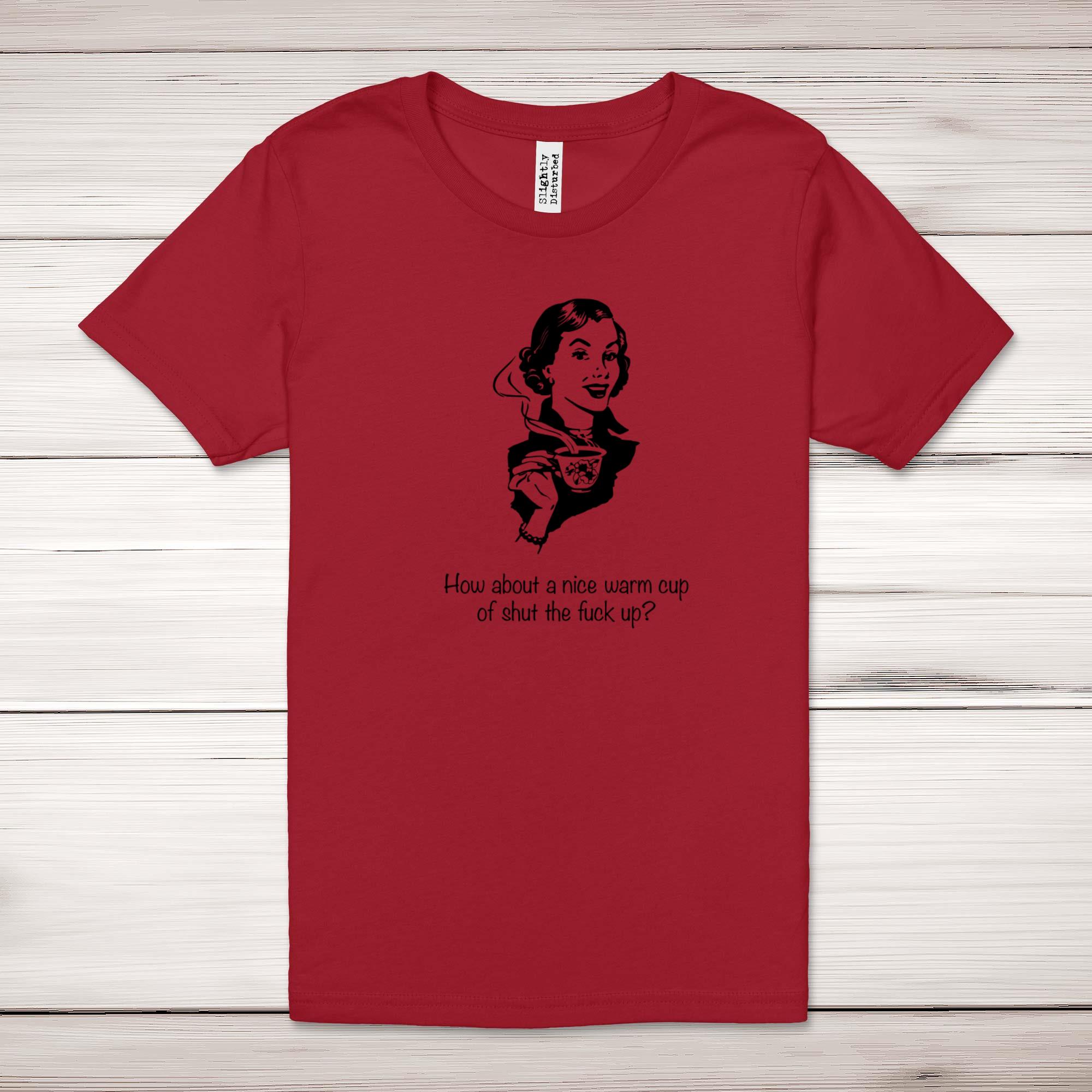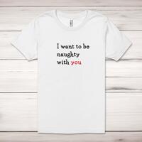Naughty With You Adult T-ShirtA novelty unisex adult t-shirt with 'I Want To Be Naughty With You' printed across the front of a 100% cotton* t-shirt. This novelty t-shirt is great as a gift for any occasion.All of our unisex adult t-shirts are designed and hand-printed in the UK and are manufactured from 100% ringspun cotton for a premium quality feel and feature double-stitched waist hem and sleeves, seamless double-needle collar, taped neck and shoulders, and a tubular body that has been quarter turned to avoid a centre crease; available in sizes from Extra Small to 4XL*. *Black & White tees available in sizes XS - 4XL, all other colours available XS - 2XL Size GuideUnisex adult t-shirts are measured across the chest, in inchesXS 30/32'S 34/36'M 38/40'L 42/44'XL 46/48'2XL 50/52'3XL 54/56'4XL 58/60'See more on our clothing size guide (opens in new tab)Please NoteAll of our items are hand-printed to order, as a result, colours may vary between prints - images are for illustration purposes only.Show more products with the Naughty With You design