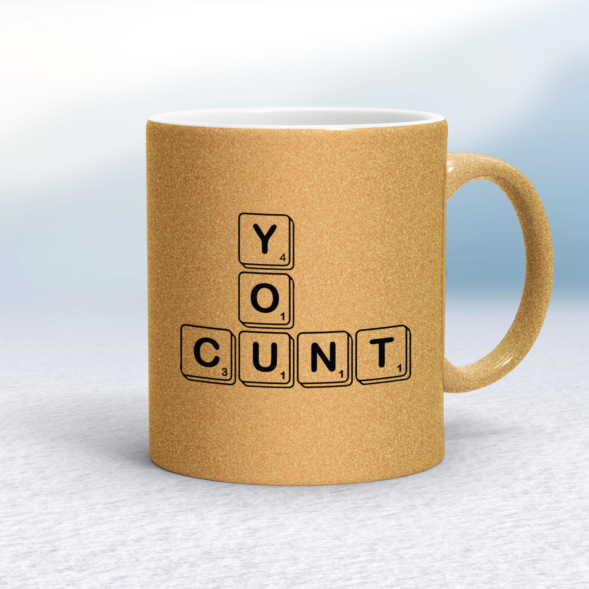 Scrabble Tiles You Cunt Mug - Gold Glitter/White, 10oz