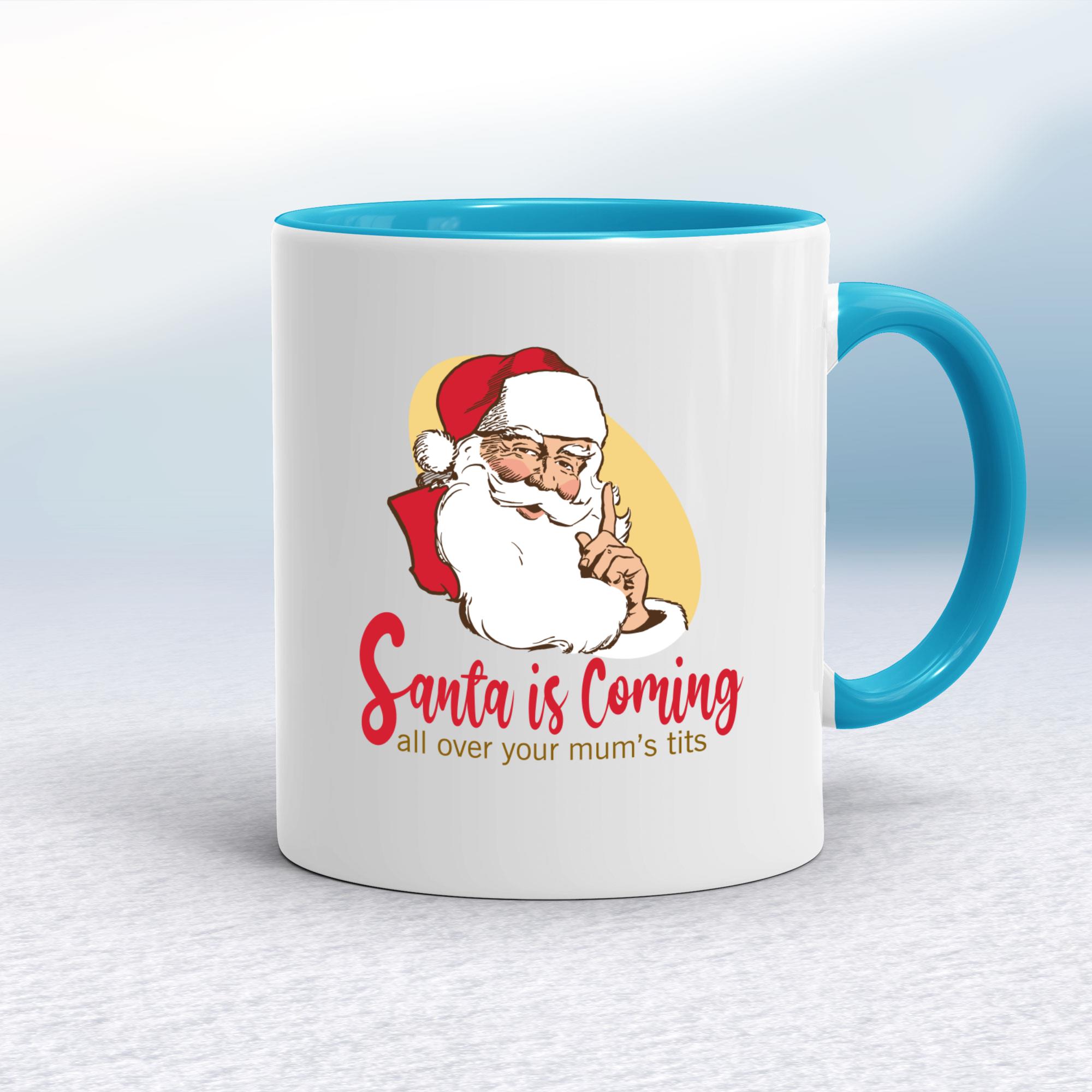 Santa Is Coming Mug - White/Light Blue, 10oz