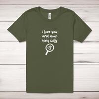 Tiny Willy Adult T-ShirtA rude unisex adult t-shirt with 'I Love You And Your Tiny Willy' printed across the front of a 100% cotton* t-shirt. This rude t-shirt is great as a gift for any occasion.All of our unisex adult t-shirts are designed and hand-printed in the UK and are manufactured from 100% ringspun cotton for a premium quality feel and feature double-stitched waist hem and sleeves, seamless double-needle collar, taped neck and shoulders, and a tubular body that has been quarter turned to avoid a centre crease; available in sizes from Extra Small to 4XL*. *Black & White tees available in sizes XS - 4XL, all other colours available XS - 2XL Size GuideUnisex adult t-shirts are measured across the chest, in inchesXS 30/32'S 34/36'M 38/40'L 42/44'XL 46/48'2XL 50/52'3XL 54/56'4XL 58/60'See more on our clothing size guide (opens in new tab)Please NoteAll of our items are hand-printed to order, as a result, colours may vary between prints - images are for illustration purposes only.Show more products with the Tiny Willy design