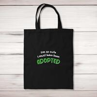 So Cute I'm Adopted Tote BagA novelty shopping bag with 'So Cute I'm Adopted' printed on the front of a 100% cotton tote bag. This novelty bag is a perfect replacement for plastic bags in retail, supermarkets and any other kinds of stores. Reusable, sustainable and multifunctional. 100% 150gsm Cotton10 litre capacity38 x 42 cmLong handled shopper, for easy use over the shoulderAvailable in a range of coloursDesigned and hand-printed in the UKPlease NoteAll of our items are hand-printed to order, as a result, colours may vary between prints - images are for illustration purposes only.
