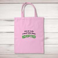 So Cute I'm Adopted Tote BagA novelty shopping bag with 'So Cute I'm Adopted' printed on the front of a 100% cotton tote bag. This novelty bag is a perfect replacement for plastic bags in retail, supermarkets and any other kinds of stores. Reusable, sustainable and multifunctional. 100% 150gsm Cotton10 litre capacity38 x 42 cmLong handled shopper, for easy use over the shoulderAvailable in a range of coloursDesigned and hand-printed in the UKPlease NoteAll of our items are hand-printed to order, as a result, colours may vary between prints - images are for illustration purposes only.