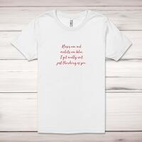 I Get Really Wet Adult T-ShirtA rude unisex adult t-shirt with 'Roses Are Red, Violets Are Blue,I Get Really Wet, Just Thinking Of You' printed across the front of a 100% cotton* t-shirt. This rude t-shirt is great as a gift for any occasion.All of our unisex adult t-shirts are designed and hand-printed in the UK and are manufactured from 100% ringspun cotton for a premium quality feel and feature double-stitched waist hem and sleeves, seamless double-needle collar, taped neck and shoulders, and a tubular body that has been quarter turned to avoid a centre crease; available in sizes from Extra Small to 4XL*. *Black & White tees available in sizes XS - 4XL, all other colours available XS - 2XL Size GuideUnisex adult t-shirts are measured across the chest, in inchesXS 30/32'S 34/36'M 38/40'L 42/44'XL 46/48'2XL 50/52'3XL 54/56'4XL 58/60'See more on our clothing size guide (opens in new tab)Please NoteAll of our items are hand-printed to order, as a result, colours may vary between prints - images are for illustration purposes only.Show more products with the I Get Really Wet design