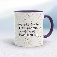 Someone Hand Me the Prosecco MugA novelty mug with 'Someone Hand Me the Prosecco & Watch Me Get Fabulous!' printed on both sides. Simple and straight to the point this novelty mug is great as a gift for any occasion.Our Someone Hand Me the Prosecco mug is hand-printed on both sides (front/back) of a high-quality mug and is available in a variety of styles and colours. Choose from A classic ceramic mug in white glossVibrantly coloured inner and matching handle mugsGold or silver sparkling pearl finish mugsGold, silver, pink or blue glitter mugsPremium satin mugs in a choice of colours.Please NoteAll of our items are hand-printed to order, as a result, colours may vary between prints - images are for illustration purposes only.
