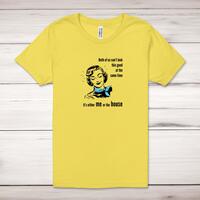 Both Of Us Can't Look This Good Adult T-ShirtA novelty unisex adult t-shirt with 'Both of us can't look this good it's either me or the house.' printed across the front of a 100% cotton* t-shirt. This novelty t-shirt is great as a gift for any occasion.All of our unisex adult t-shirts are designed and hand-printed in the UK and are manufactured from 100% ringspun cotton for a premium quality feel and feature double-stitched waist hem and sleeves, seamless double-needle collar, taped neck and shoulders, and a tubular body that has been quarter turned to avoid a centre crease; available in sizes from Extra Small to 4XL*. *Black & White tees available in sizes XS - 4XL, all other colours available XS - 2XL Size GuideUnisex adult t-shirts are measured across the chest, in inchesXS 30/32'S 34/36'M 38/40'L 42/44'XL 46/48'2XL 50/52'3XL 54/56'4XL 58/60'See more on our clothing size guide (opens in new tab)Please NoteAll of our items are hand-printed to order, as a result, colours may vary between prints - images are for illustration purposes only.Show more products with the Both Of Us Can't Look This Good design