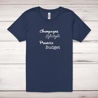 Champagne Lifestyle, Prosecco Budget Adult T-ShirtA novelty unisex adult t-shirt with 'Champagne Lifestyle, Prosecco Budget' printed across the front of a 100% cotton* t-shirt. This novelty t-shirt is great as a gift for any occasion.All of our unisex adult t-shirts are designed and hand-printed in the UK and are manufactured from 100% ringspun cotton for a premium quality feel and feature double-stitched waist hem and sleeves, seamless double-needle collar, taped neck and shoulders, and a tubular body that has been quarter turned to avoid a centre crease; available in sizes from Extra Small to 4XL*. *Black & White tees available in sizes XS - 4XL, all other colours available XS - 2XL Size GuideUnisex adult t-shirts are measured across the chest, in inchesXS 30/32'S 34/36'M 38/40'L 42/44'XL 46/48'2XL 50/52'3XL 54/56'4XL 58/60'See more on our clothing size guide (opens in new tab)Please NoteAll of our items are hand-printed to order, as a result, colours may vary between prints - images are for illustration purposes only.Show more products with the Champagne Lifestyle, Prosecco Budget design