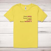 Priceop.com : coffee because i need it, wine because i deserve it adult t-shirt - yellow, 2xl Priceop.com : coffee because i need it, wine because i deserve it adult t-shirt - yellow, 2xl