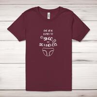 One Year Closer to Bingo Adult T-ShirtA novelty unisex adult t-shirt with 'One Year Closer to Bingo And Big Knickers' printed across the front of a 100% cotton* t-shirt. This novelty t-shirt is great as a gift for any occasion.All of our unisex adult t-shirts are designed and hand-printed in the UK and are manufactured from 100% ringspun cotton for a premium quality feel and feature double-stitched waist hem and sleeves, seamless double-needle collar, taped neck and shoulders, and a tubular body that has been quarter turned to avoid a centre crease; available in sizes from Extra Small to 4XL*. *Black & White tees available in sizes XS - 4XL, all other colours available XS - 2XL Size GuideUnisex adult t-shirts are measured across the chest, in inchesXS 30/32'S 34/36'M 38/40'L 42/44'XL 46/48'2XL 50/52'3XL 54/56'4XL 58/60'See more on our clothing size guide (opens in new tab)Please NoteAll of our items are hand-printed to order, as a result, colours may vary between prints - images are for illustration purposes only.Show more products with the One Year Closer to Bingo design
