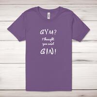 Gym I Thought You Said Gin! Adult T-ShirtA novelty unisex adult t-shirt with 'Gym? I Thought You Said Gin!' printed across the front of a 100% cotton* t-shirt. This novelty t-shirt is great as a gift for any occasion.All of our unisex adult t-shirts are designed and hand-printed in the UK and are manufactured from 100% ringspun cotton for a premium quality feel and feature double-stitched waist hem and sleeves, seamless double-needle collar, taped neck and shoulders, and a tubular body that has been quarter turned to avoid a centre crease; available in sizes from Extra Small to 4XL*. *Black & White tees available in sizes XS - 4XL, all other colours available XS - 2XL Size GuideUnisex adult t-shirts are measured across the chest, in inchesXS 30/32'S 34/36'M 38/40'L 42/44'XL 46/48'2XL 50/52'3XL 54/56'4XL 58/60'See more on our clothing size guide (opens in new tab)Please NoteAll of our items are hand-printed to order, as a result, colours may vary between prints - images are for illustration purposes only.Show more products with the Gym? I Thought You Said Gin! design