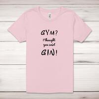 Gym I Thought You Said Gin! Adult T-ShirtA novelty unisex adult t-shirt with 'Gym? I Thought You Said Gin!' printed across the front of a 100% cotton* t-shirt. This novelty t-shirt is great as a gift for any occasion.All of our unisex adult t-shirts are designed and hand-printed in the UK and are manufactured from 100% ringspun cotton for a premium quality feel and feature double-stitched waist hem and sleeves, seamless double-needle collar, taped neck and shoulders, and a tubular body that has been quarter turned to avoid a centre crease; available in sizes from Extra Small to 4XL*. *Black & White tees available in sizes XS - 4XL, all other colours available XS - 2XL Size GuideUnisex adult t-shirts are measured across the chest, in inchesXS 30/32'S 34/36'M 38/40'L 42/44'XL 46/48'2XL 50/52'3XL 54/56'4XL 58/60'See more on our clothing size guide (opens in new tab)Please NoteAll of our items are hand-printed to order, as a result, colours may vary between prints - images are for illustration purposes only.Show more products with the Gym? I Thought You Said Gin! design