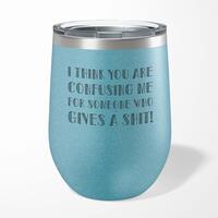 Someone Who Gives A Shit Wine TumblerOur Someone Who Gives A Shit 12oz tumbler is hand-printed with 'Someone Who Gives A Shit' on both sides (front/back) of an insulated stainless steel wine tumbler and available in a variety of colours.Ideal for weekends away or relaxing in the garden, our 12oz Wine Tumbler promises to keep cold drinks cold and hot drinks hot for longer than standard drinkware. Made from premium grade, food-safe stainless steel with double-wall vacuum insulation. A fantastic rude tumbler, ideal for keeping your favourite tipple at the perfect temperature whatever the weather. High-grade stainless steel double-wall construction. Insulated for hot or cold liquids. Flat bottom design means less risk of accidental spillages. See through lid allows you to carry your beverage around without spilling. Drinking spout incorporated in to the lid. Please Note All of our items are hand-printed to order, as a result, colours may vary between prints - images are for illustration purposes only.
