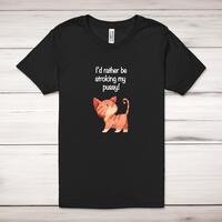 I'd Rather Be Stroking My Pussy Adult T-ShirtA rude unisex adult t-shirt with 'I'd Rather Be Stroking My Pussy' printed across the front of a 100% cotton* t-shirt. This rude t-shirt is great as a gift for any occasion.All of our unisex adult t-shirts are designed and hand-printed in the UK and are manufactured from 100% ringspun cotton for a premium quality feel and feature double-stitched waist hem and sleeves, seamless double-needle collar, taped neck and shoulders, and a tubular body that has been quarter turned to avoid a centre crease; available in sizes from Extra Small to 4XL*. *Black & White tees available in sizes XS - 4XL, all other colours available XS - 2XL Size GuideUnisex adult t-shirts are measured across the chest, in inchesXS 30/32'S 34/36'M 38/40'L 42/44'XL 46/48'2XL 50/52'3XL 54/56'4XL 58/60'See more on our clothing size guide (opens in new tab)Please NoteAll of our items are hand-printed to order, as a result, colours may vary between prints - images are for illustration purposes only.Show more products with the I'd Rather Be Stroking My Pussy design