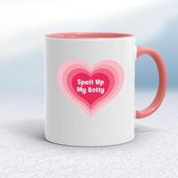 Spaff Up My MugA rude mug with 'Spaff Up My Chuff' or 'Spaff Up My Botty' printed on both sides. Simple and straight to the point this rude mug is great as a gift for any occasion.Our Spaff Up My mug is hand-printed on both sides (front/back) of a high-quality mug and is available in a variety of styles and colours. Choose from A classic ceramic mug in white glossVibrantly coloured inner and matching handle mugsGold or silver sparkling pearl finish mugsGold, silver, pink or blue glitter mugsPremium satin mugs in a choice of colours.Please NoteAll of our items are hand-printed to order, as a result, colours may vary between prints - images are for illustration purposes only.