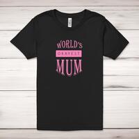 World's Okayest Mum Adult T-ShirtA novelty unisex adult t-shirt with 'World's Okayest Mum' printed across the front of a 100% cotton* t-shirt. This novelty t-shirt is great as a gift for any occasion.All of our unisex adult t-shirts are designed and hand-printed in the UK and are manufactured from 100% ringspun cotton for a premium quality feel and feature double-stitched waist hem and sleeves, seamless double-needle collar, taped neck and shoulders, and a tubular body that has been quarter turned to avoid a centre crease; available in sizes from Extra Small to 4XL*. *Black & White tees available in sizes XS - 4XL, all other colours available XS - 2XL Size GuideUnisex adult t-shirts are measured across the chest, in inchesXS 30/32'S 34/36'M 38/40'L 42/44'XL 46/48'2XL 50/52'3XL 54/56'4XL 58/60'See more on our clothing size guide (opens in new tab)Please NoteAll of our items are hand-printed to order, as a result, colours may vary between prints - images are for illustration purposes only.Show more products with the World's Okayest Mum design