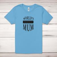World's Okayest Mum Adult T-ShirtA novelty unisex adult t-shirt with 'World's Okayest Mum' printed across the front of a 100% cotton* t-shirt. This novelty t-shirt is great as a gift for any occasion.All of our unisex adult t-shirts are designed and hand-printed in the UK and are manufactured from 100% ringspun cotton for a premium quality feel and feature double-stitched waist hem and sleeves, seamless double-needle collar, taped neck and shoulders, and a tubular body that has been quarter turned to avoid a centre crease; available in sizes from Extra Small to 4XL*. *Black & White tees available in sizes XS - 4XL, all other colours available XS - 2XL Size GuideUnisex adult t-shirts are measured across the chest, in inchesXS 30/32'S 34/36'M 38/40'L 42/44'XL 46/48'2XL 50/52'3XL 54/56'4XL 58/60'See more on our clothing size guide (opens in new tab)Please NoteAll of our items are hand-printed to order, as a result, colours may vary between prints - images are for illustration purposes only.Show more products with the World's Okayest Mum design
