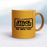 Stack Overflow MugA geeky mug with 'May The Stack Overflow Be with you' in a Star Wars style logo printed on both sides. Simple and straight to the point this geeky mug is great as a gift for any occasion.Our Stack Overflow mug is hand-printed on both sides (front/back) of a high-quality mug and is available in a variety of styles and colours. Choose from A classic ceramic mug in white glossVibrantly coloured inner and matching handle mugsGold or silver sparkling pearl finish mugsGold, silver, pink or blue glitter mugsPremium satin mugs in a choice of colours.Please NoteAll of our items are hand-printed to order, as a result, colours may vary between prints - images are for illustration purposes only.